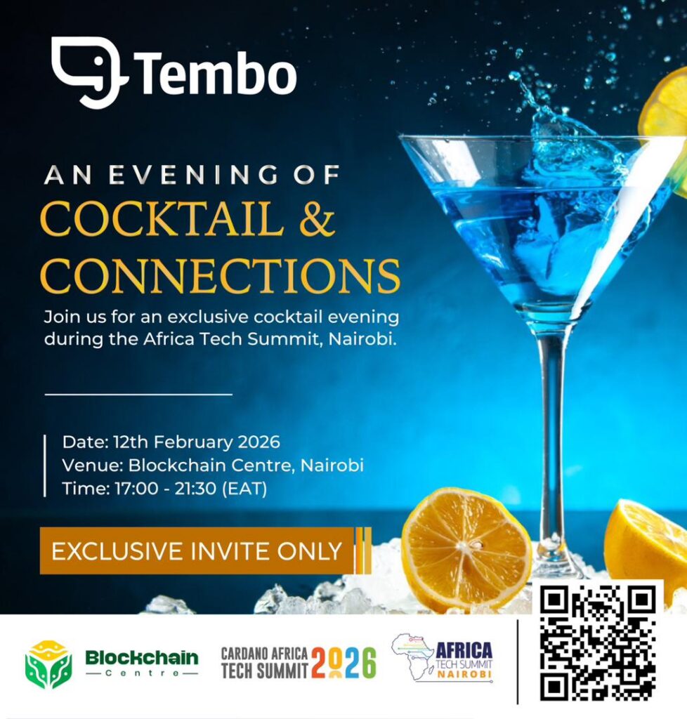 Congratulations on securing your spot at an exclusive cocktail night for founders, partners, and friends of the ecosystem during the Africa Tech Summit Nairobi with TemboPlus.